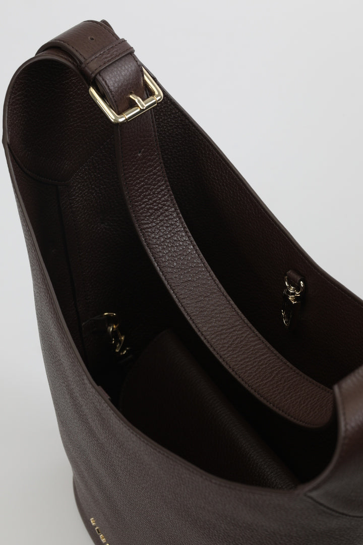 Lotus este un hobo bucket bag ideal pentru ținutele casual și smart casual. Accesorizarea metalică subtilă conferă acestui model un look atemporal, dar totodată modern, punând în valoare eleganța pielii naturale. Interiorul generos, cu un compartiment detașabil, îți permite să îți organizezi eficient lucrurile marunte.